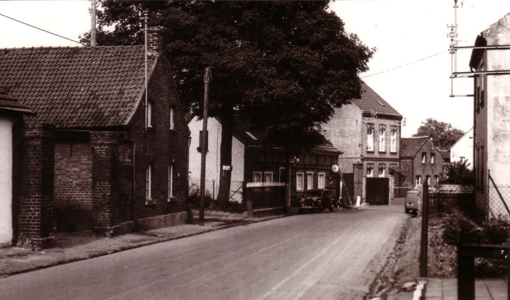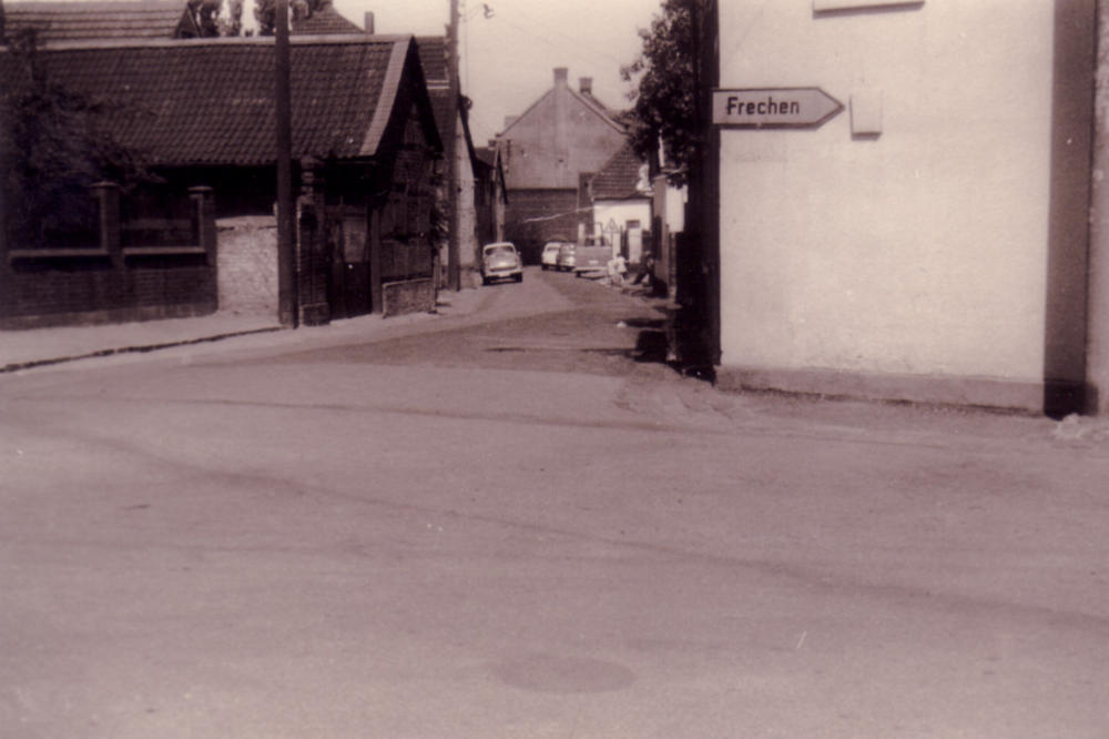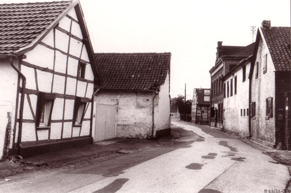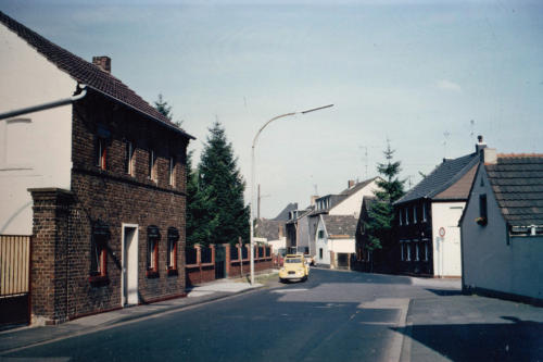 Blick damals in die Aegidiusstraße aufwärts am Hüchelner Brauhaus vorbei bis zur Pump