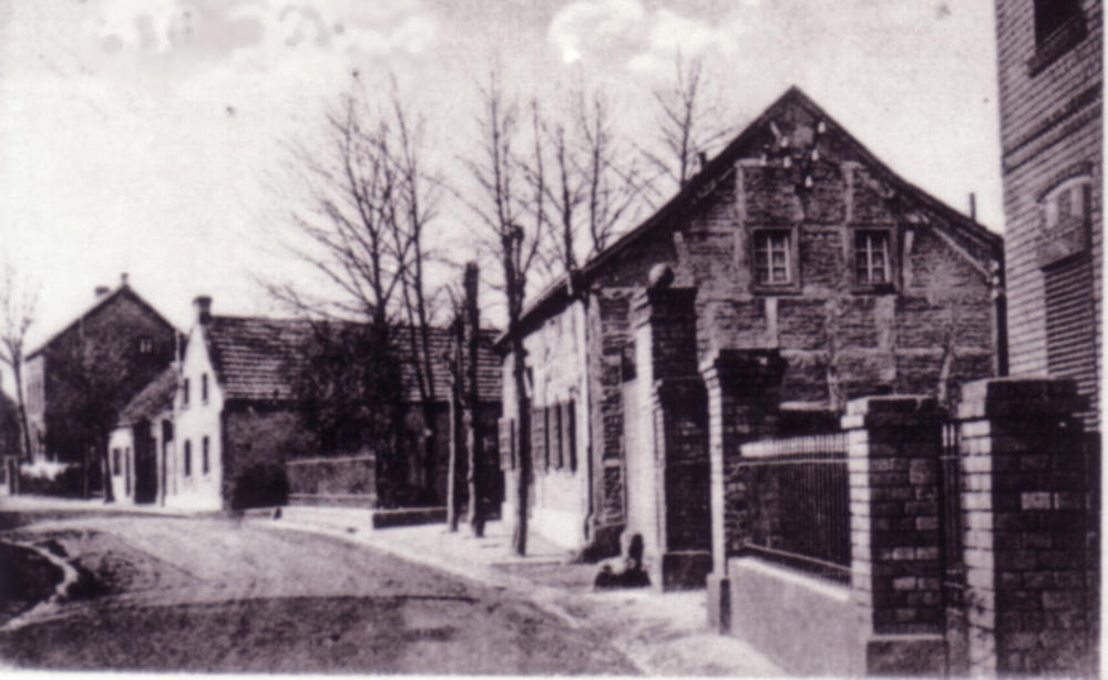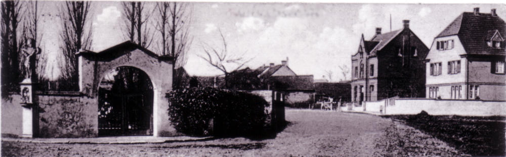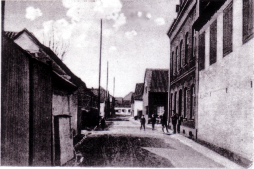 Damals, Blick vom Ehrenmal in die Aegidiusstraße hinein mit der alten Schule von 1896…